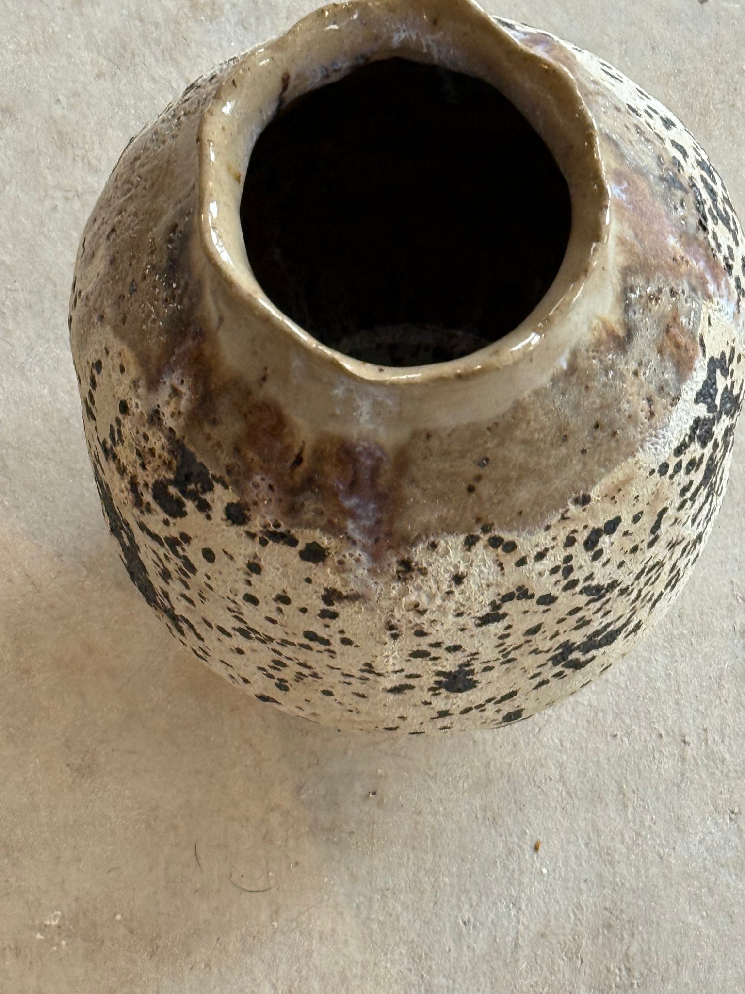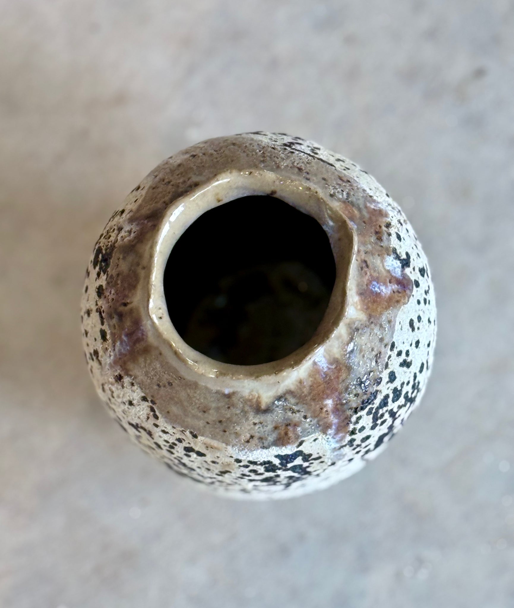 Moon Vase has cream textures with white stripe & inside. Great for spring flowers.